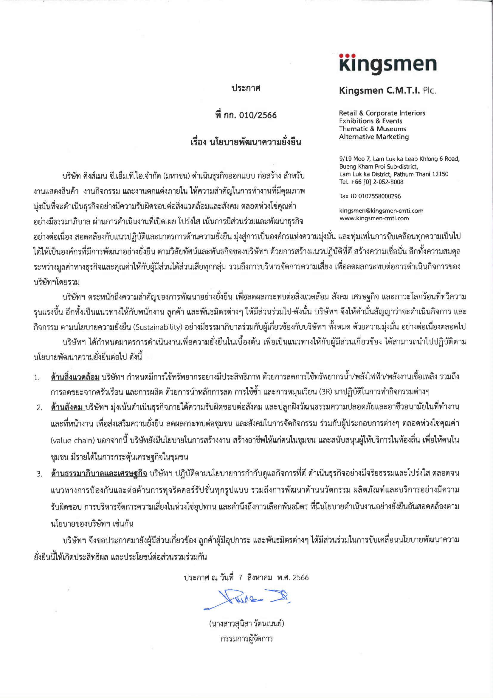 ประกาศนโยบายพัฒนาความยั่งยืน